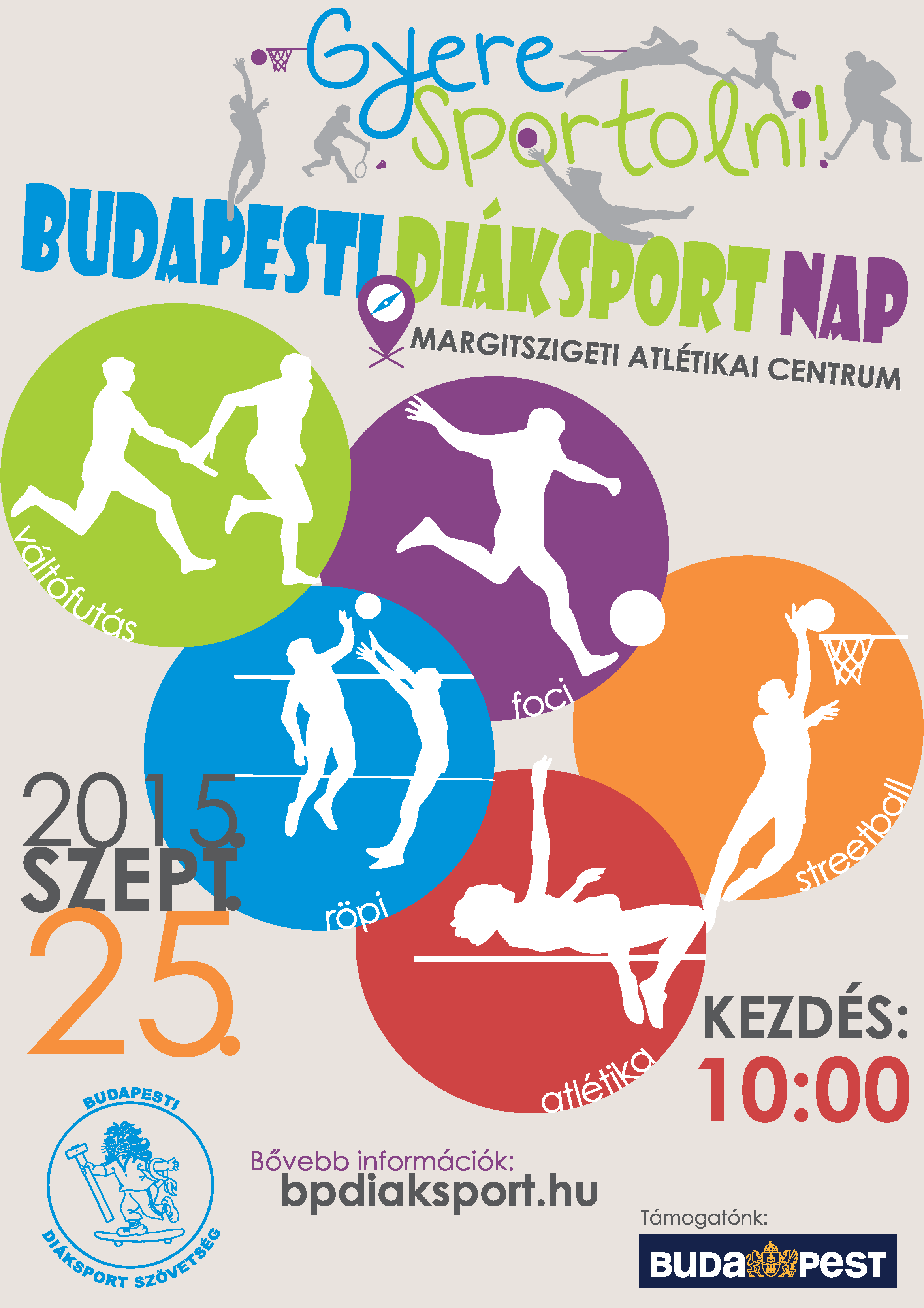 2015. szeptember 25-én, pénteken 10 órától a Margitszigeti Atlétikai Centrumba várunk minden sportolni vágyó budapesti általános és középiskolás diákot! A Magyar Diáksport Napja eseményhez kapcsolódóan első alkalommal kerül megrendezésre a Budapesti Diáksport Nap.